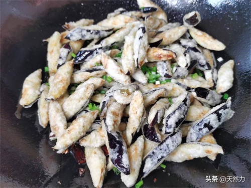 3、茄子下锅炸的时候油温一定要高,包括在炸制的整个过程都要用大火高油温来炸,因为茄子中所含的水分比较多,如果油温太低的话,茄子就会吸入很多油进去。