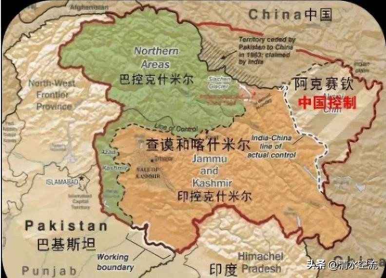 克什米尔,总面积约21万平方公里,地处印度、巴基斯坦、中国和阿富汗之间,人口当中有80%是穆斯林,20%信奉印度教。1947年印巴分治时,英国殖民者鉴于克什米尔战略地位重要,力图利用克什米尔建立军事基地,因而在克什米尔制造纠纷,从中渔利。而印、巴两国则围绕克什米尔的主权归属问题互不相让。