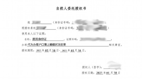 受托人携带打印的《自然人授权委托书》可代为办理相关户籍业务