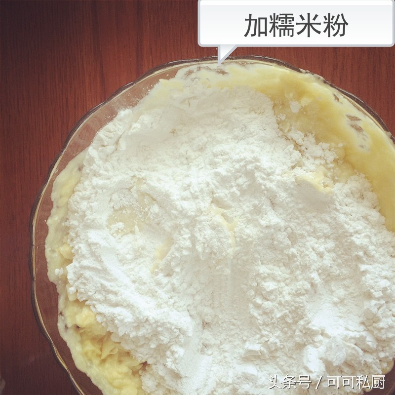 2、加适量糯米粉。其实多放少放都可以,想香一点就少放点糯米粉。