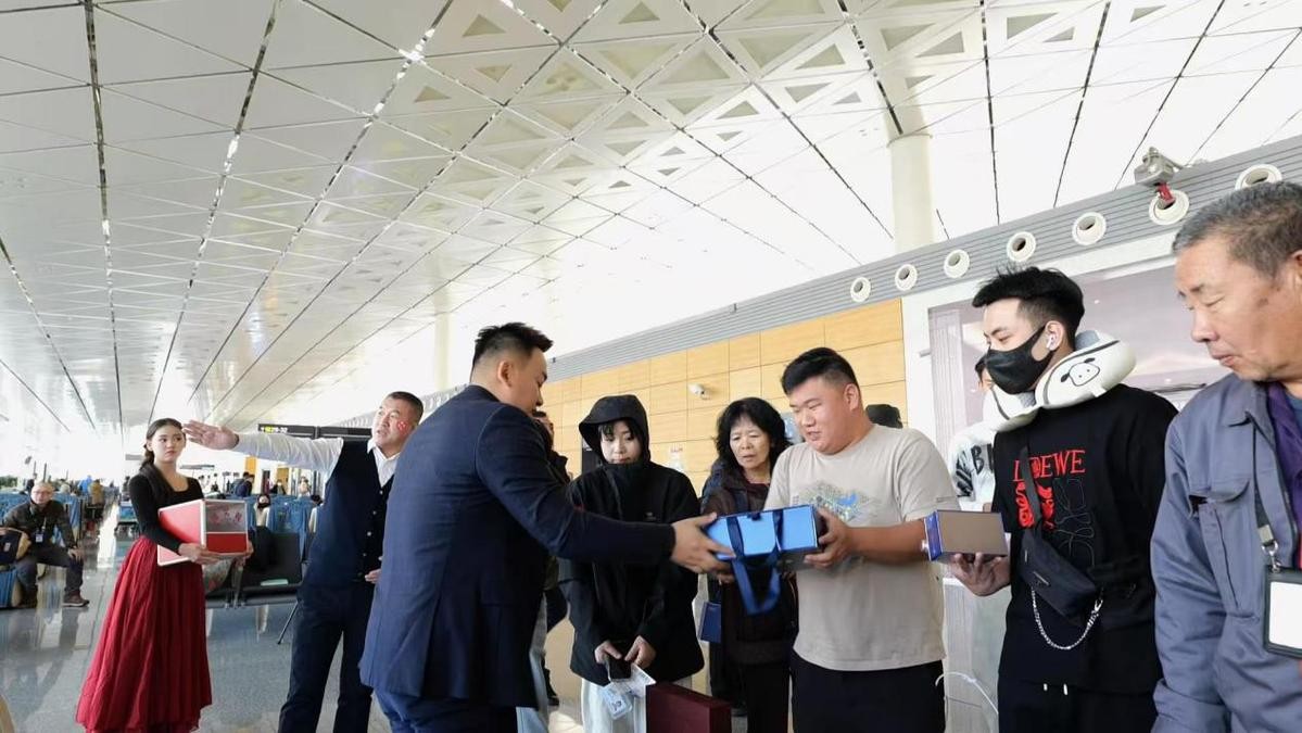 推介会以冰雪独舞开场,中国风舞蹈、演唱、快闪等节目顺次上演,其间穿插玩偶互动、有奖问答等活动,现场气氛热烈,吸引众多旅客关注。