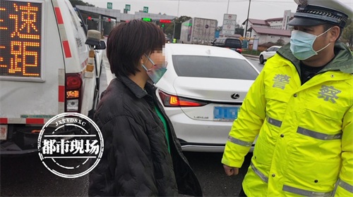 2月18日下午,江西高速交警正在疏导交通时,突然一辆白色小车停在身旁,一位女性司机下车向民警求助。