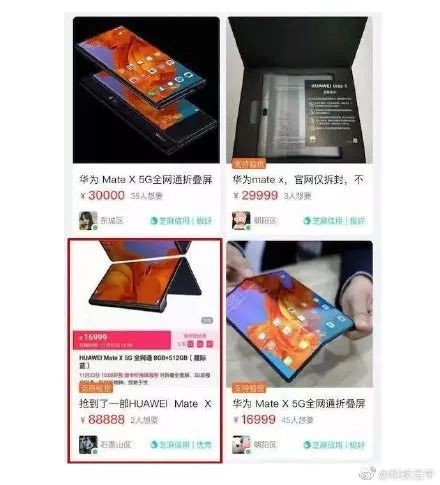 据了解,售价16999元的华为折叠屏手机Mate X 5G版开卖“秒没”,在某些平台上Mate X现货已被炒到6万元至8万元。