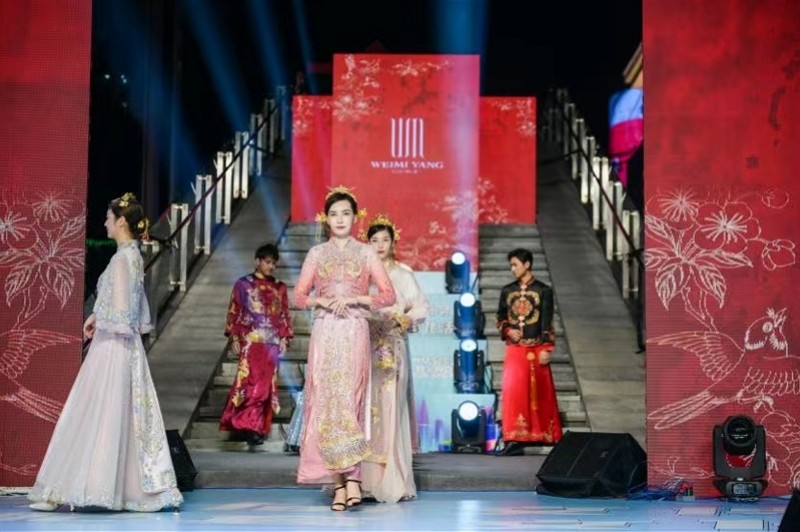 本次活动选取中式嫁衣时装秀、潮流街拍闪秀形式,将中式嫁衣盛会打造成 “国潮时尚元气大本营”,拉近国潮时尚与市民的距离。
