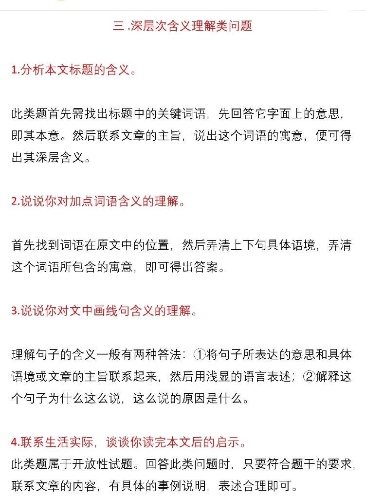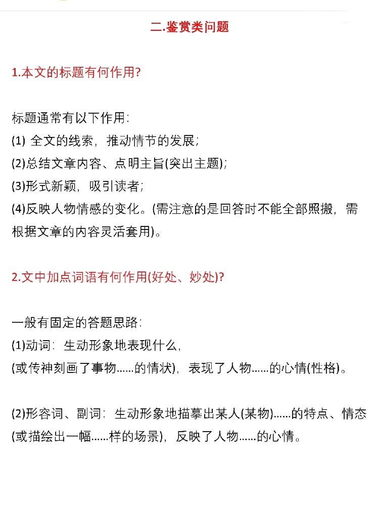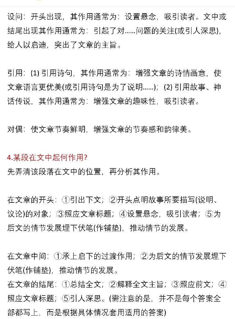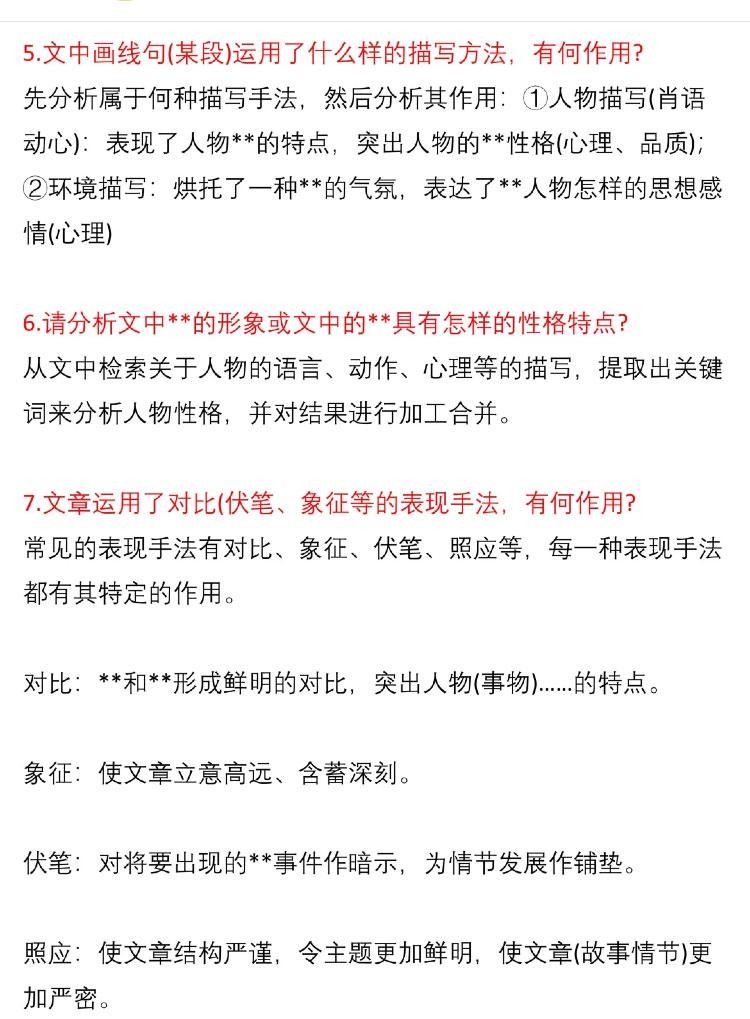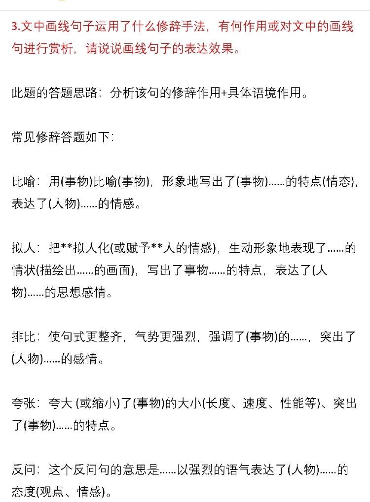 干货——语文现代文阅读答题模板