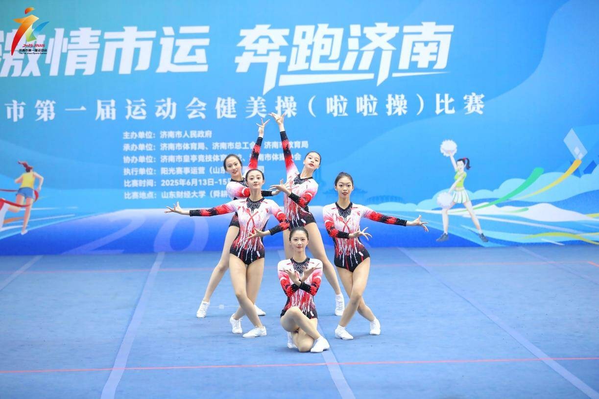 齐鲁网·闪电新闻6月16日讯 6月15日,济南市第一届运动会健美操(啦啦操)比赛在山东财经大学(舜耕校区)体育馆热力上演。比赛吸引了驻济18所高校23支代表队的400余名大学生运动员同台竞技,尽情展现泉城高校学子的蓬勃活力与风采。