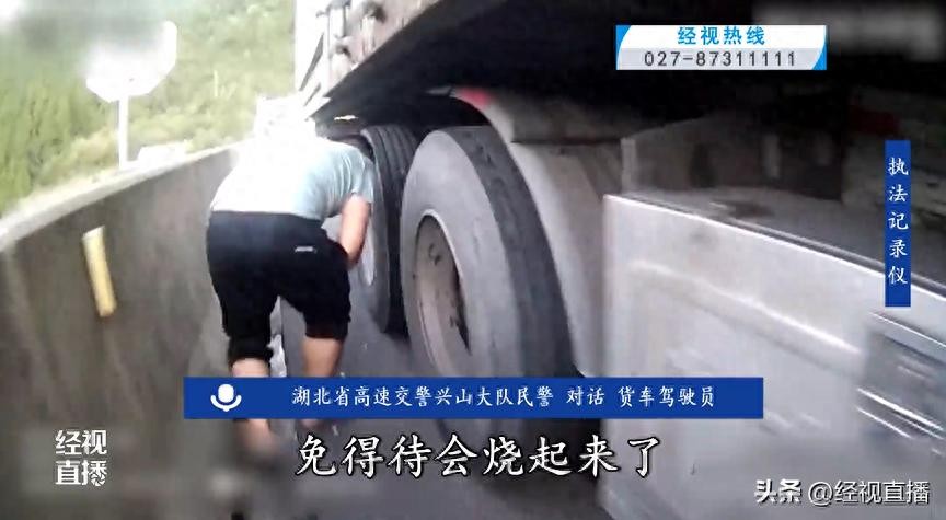 近日,一辆行驶在沪蓉高速兴山段的13米重型半挂车突发险情。当日下午6时许,湖北高速交警兴山大队民警在巡逻时,发现该车右侧尾部冒烟,遂立即将其拦停检查。