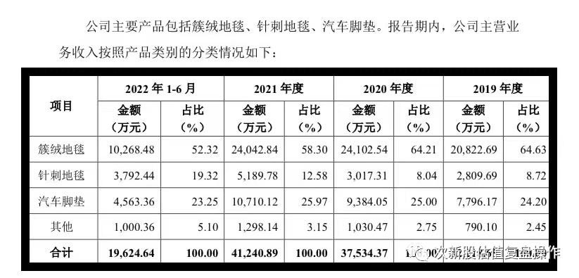 公司主营业务为汽车内饰件材料及产品的研发,生产和销售,主要产品包括汽车地毯和汽车脚垫两大类,产品应用市场主要面向整车配套市场(即前装市场),公司已成为宝马,奥迪,奔驰,沃尔沃,红旗等多家知名汽车品牌的汽车地毯二级供应商,以及奥迪,沃尔沃,别克,蔚来等多家知名汽车品牌的汽车脚垫一级供应商。行业技术壁垒不高,竞争激烈,业绩今年也有下滑趋势,质地很一般,好在是主板发行,盘子超小,首日完全没有破发的风险,给予积极申购建议。