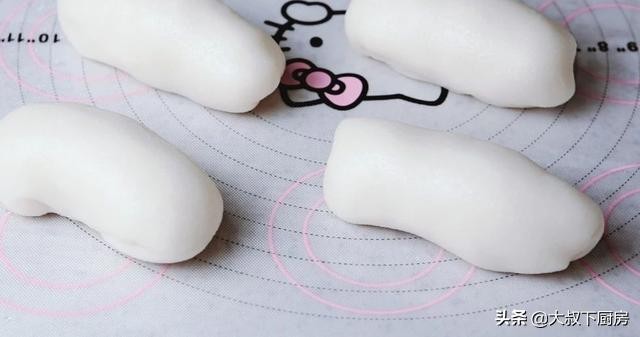 2、有模具的可以将面团塞在热狗模具中,没有模具的,尽量整的漂亮一些。