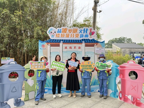 在传统与时尚交织的波罗诞庙会,居民打卡巨型垃圾分类主题签名墙,与憨态可掬的“分类吉祥物”互动摆拍,发送“品波罗诞文化,绘垃圾分类新画”口号至朋友圈,兑换定制垃圾分类冰箱贴的同时,也让垃圾分类宣传片“C位”出圈。