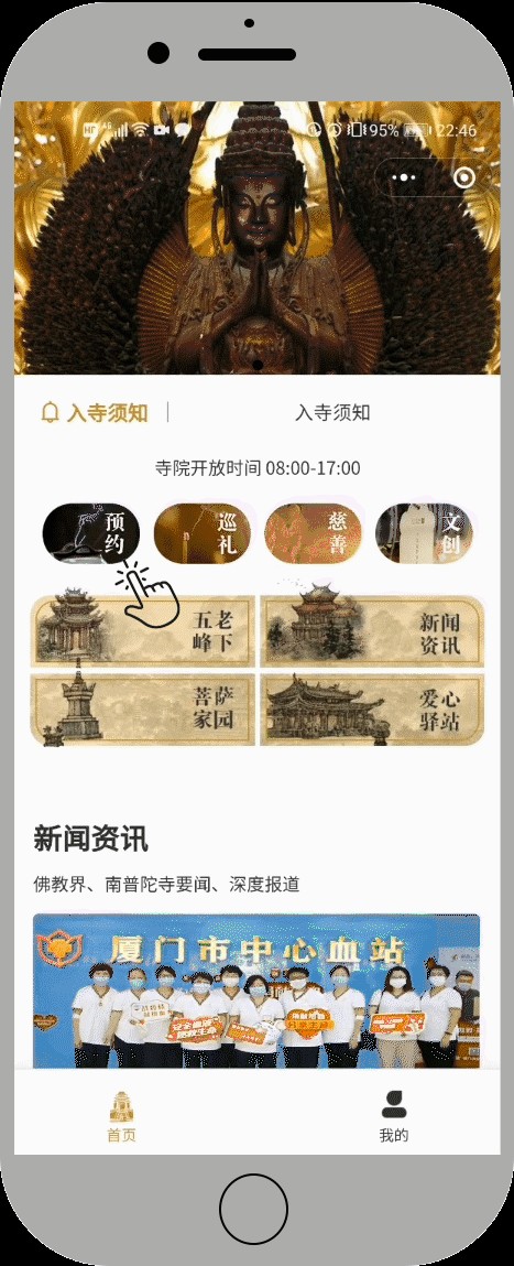 1、网上预约:请提前网上预约,预约成功者可凭“预约二维码”或“本人二代身份证”扫码入寺;