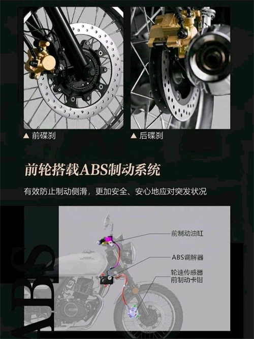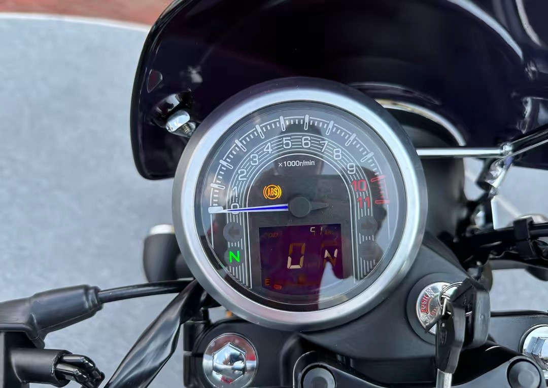 2024款CGX150系列车型全系均配备全车LED光源、前后盘式刹车系统、ABS、前正置液压减震、后双枪式减震等,提高了车辆的安全性。指针+液晶组合圆形仪表既保留了复古元素又兼具了一定的科技感,并且还能显示车速、挡位显示、油量、里程、功能指示灯等车辆信息。其他配置还有USB充电接口、前置开放式储物格、手把坡道驻车制动、铝合金轮辋等实用配置。