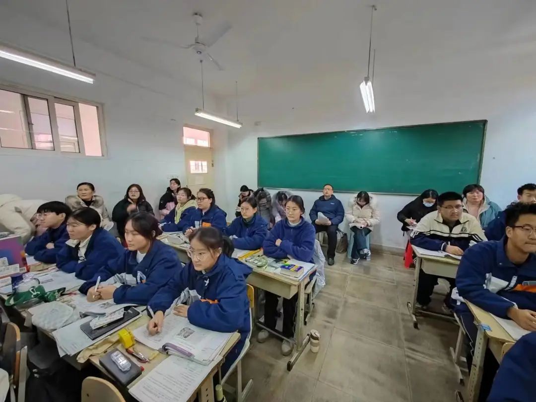 课间,来访领导老师深入各备课组,交流探讨教育教学和育人经验。