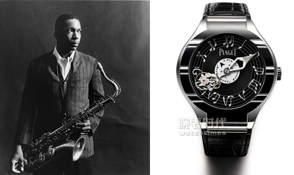 伯爵的这一款腕表可以说是为了纪念约翰·克特兰,约翰·克特兰(John Coltrane)是爵士乐历史上最伟大的萨克斯管演奏家之一,同时也是一位优秀的音乐革新家,他对六七十年代的爵士乐坛有着巨大的影响。腕表采用黑色色调,而表盘上则有一圈圆形五线谱,9点钟位置装饰优雅的低音谱记号,各种音符在上面自由跳跃,音乐元素十分明显,艺术感十足。腕表的背底,则是这位音乐家在吹奏萨克斯的剪影。