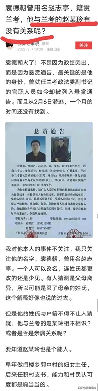 这个不是重点,我们要说的重点在这里——袁德朝曾用名赵志亭,1970年出生于河南兰考县。从名字看是袁德朝与赵志亭本是风马牛不相及,但确实是一个人,就是这个赵姓人士,激起了小星星们的无限想象。