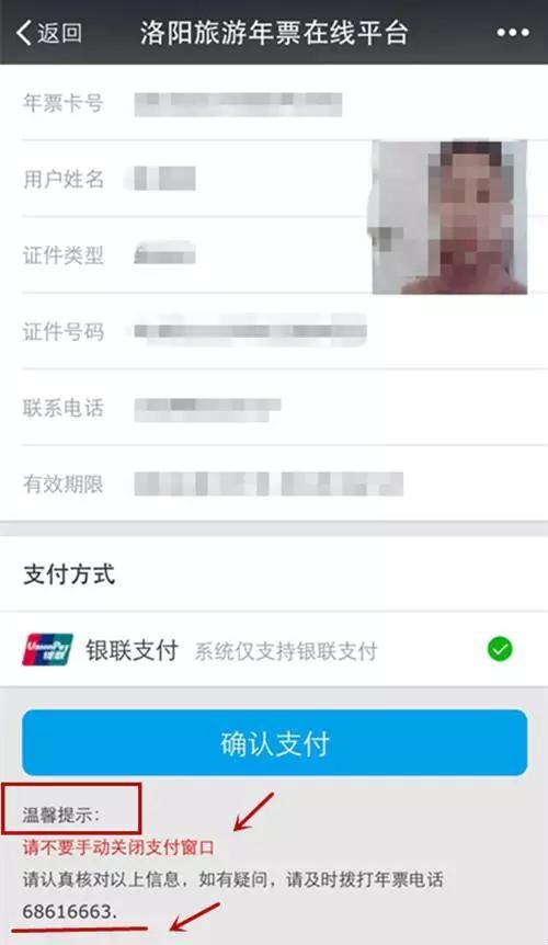 这些信息是与您办理洛阳旅游年票时的信息相匹配的,操作过程中若有疑问,该页面底端还有相关提示和咨询电话哦,请仔细阅读!
