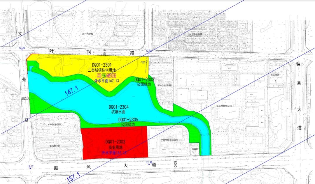 ❖DQ01-2302 地块东至中国电信安庆公司,西至振风苑小区,南至振风大道,北至规划公园绿地,用地面积约为3.19公顷;