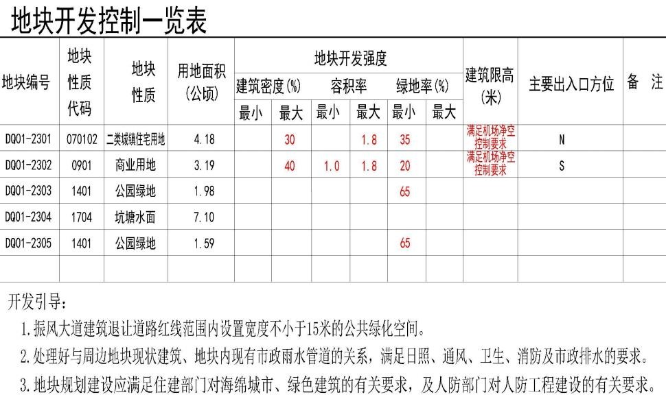 ❖DQ01-2305地块:公园绿地:绿地率≥65%。