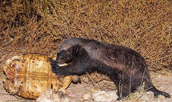 蜜獾拥有锋利的牙齿和强有力的下颌,强大的咬合力甚至可以咬穿龟甲,其他猎物更加不在话下。