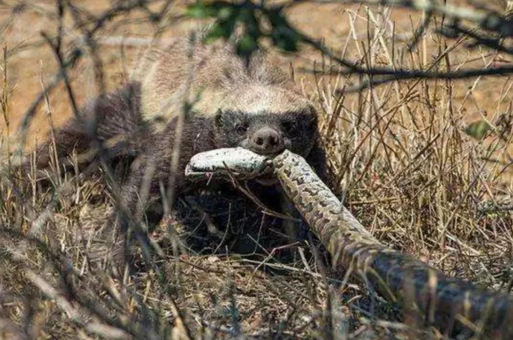 毒蛇在蜜獾面前仿佛是根辣条。蜜獾就算被咬只是进入睡眠状态,睡一觉过后就满血复活。据说是平头哥在进化的过程当中已经对蛇毒免疫,细胞不会与蛇的毒素结合,反正抗毒能力+99就对了。