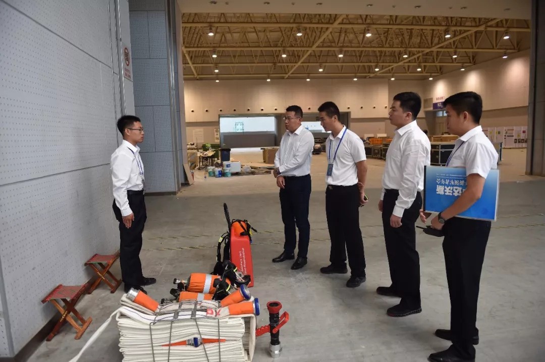 为确保涉会场馆在保证安全的前提下如期交付使用,天津消防开通“绿色通道”,明确专人,全程跟踪场馆建设工程进度,及时发现纠正建设中出现的施工偏差。同时,提前与外方团队、搭建团队、场馆方等进行了4次工作对接,明确了主会场布展搭建消防设计五项原则,并在搭建现场部署官兵,24小时驻勤,确保搭建期间绝对安全。
