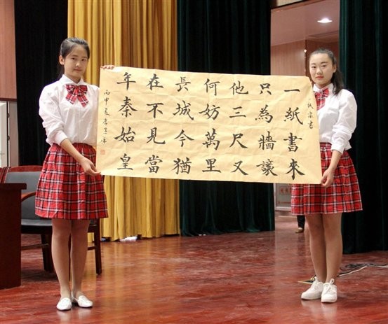泰安岱岳区职教中心2016年6月8日举办了《宝贝中国范儿》为题材的少儿大赛2016赛季创新主题曲《宝贝中国范》,让孩子们在学国学、拼才艺的同时,唱出自己的心声,用音乐传播中国文化!秉承“童蒙养正”理念,遵循“预存智慧,浸润心灵”的长线教育观,提倡“国际化前先扎根”,做“中国人的人文启蒙”,以中西合璧的体验互动式教学法,开发儿童心智潜能,教出君子淑女,打造未来领袖。“准备好了掌声鲜花,请你快快登台,向着全世界,秀出你的中国范儿!”伴随着一曲悠扬的《宝贝中国范儿》,岱岳区职教中心国学知识竞赛学前专业部专场闪亮登场了!