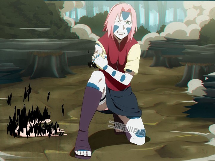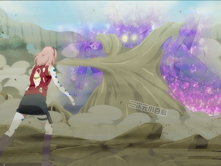 虽然小樱绝对是打不过佐助,但是如果鸣人阵亡了,那小樱绝对也会舍弃自我奋力阻止佐助,上图中我们能看到小樱使用纲手教的体术正面对抗须佐的拳头。