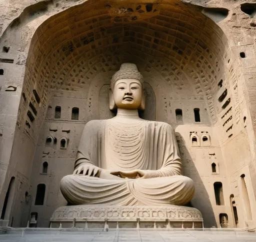 是中国著名的佛教石窟之一,位于甘肃省敦煌市。莫高窟的建造始于公元366年左右,历经多个朝代的修建和扩展,现存洞窟735个,壁画面积4.5万平方米,是世界上规模最大、内容最丰富的佛教艺术宝库之一。莫高窟的壁画和塑像不仅具有极高的艺术价值,也是研究中国历史和文化的重要资料。