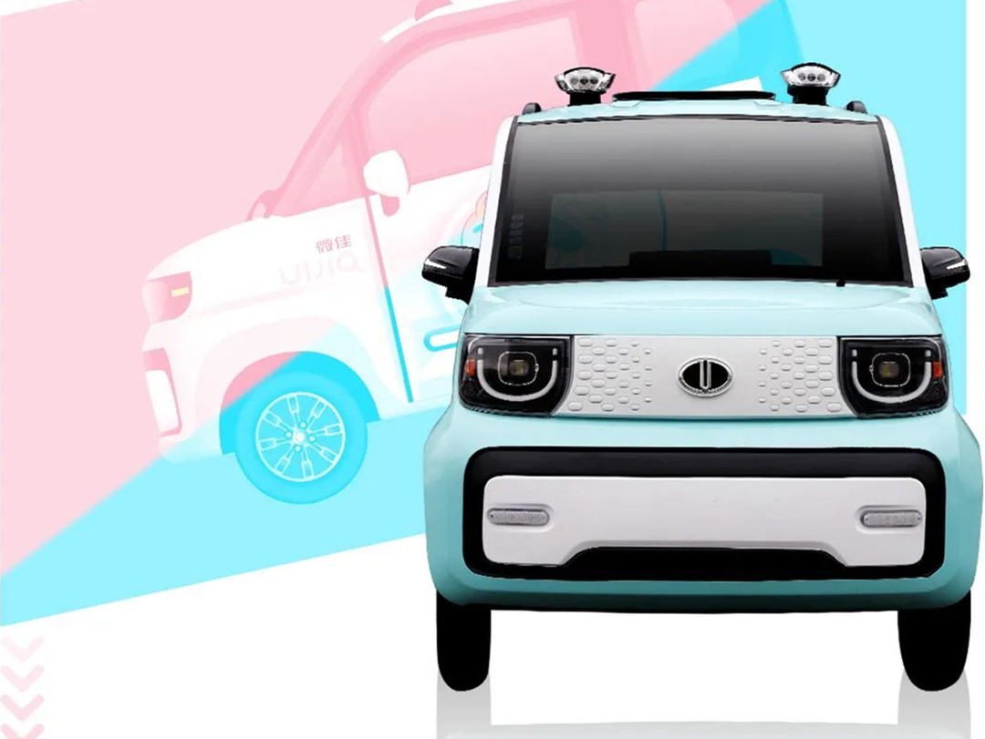 其次,我们来看微佳“冰淇淋”。同样,该车也采用了俏皮可爱的造型设计,整车小巧精致,且车辆采用了两门三座设计,最大是可载3人的。配置方面,“冰淇淋”搭载了1000W电机,以此来保证车辆动力及加速。而电池方面,车辆则可选配70Ah大容量电池,以此来确保续航性能更出色。