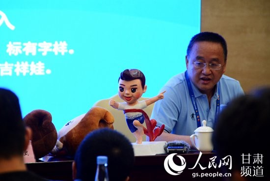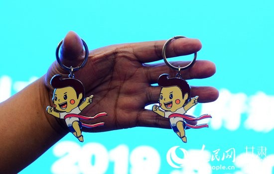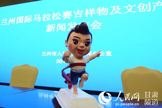 5月30日下午,兰州国际马拉松赛吉祥物及文创产品新闻发布会召开,2019兰州国际马拉松赛的官方吉祥物“兰兰”正式亮相。(王文嘉 摄)