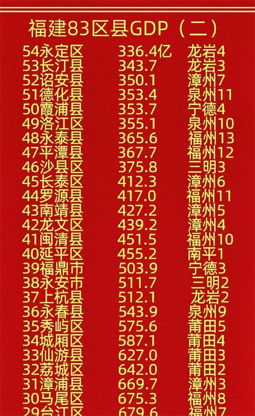 除了这三个区县,福建省还有其他16个区县的GDP超过了千亿大关,39个区县的GDP也突破了500亿。