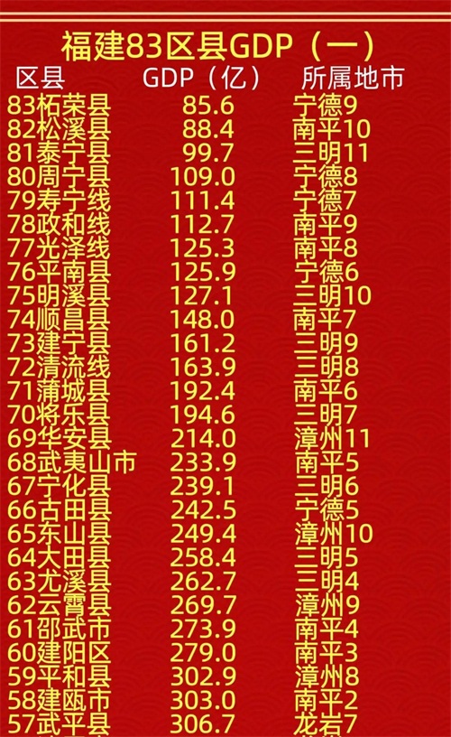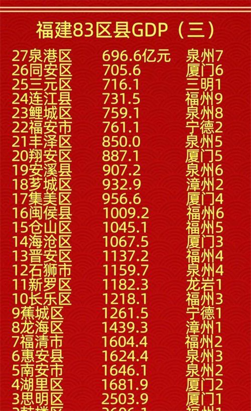 福建83区县GDP排名:晋江居首,鼓楼紧随其后,思明位居第三