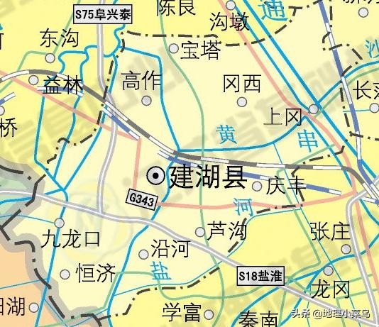 建湖县域原是古淮夷地的一部分,大地构造单元属扬子淮地台的苏北拗陷带,由于平原沉陷幅度不等,形成一系列相对的凹陷和凸起,建湖县城位于建湖潜伏凸起地段。县境草堰口至大团口一线原为黄海的海岸线,原有三条南北走向的海岸沙丘穿过其间,以后逐渐淹没。沙丘以东地区为冲积平原,明代中叶以后,始逐渐形成滩涂,明代后期和清代辟为盐灶,民初废灶兴垦,始辟为农田;沙丘以西地区为堆积平原。东部原海岸线沿冈地带和西部走马沟两岸,地势略高,其他地区地势偏低。