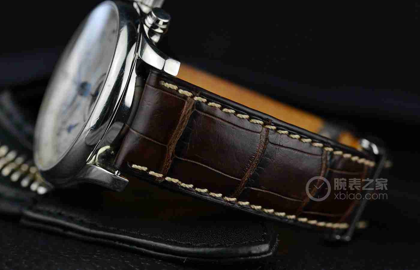 腕表搭配一条棕色皮革表带,两边采用压线设计,颇具时尚感。