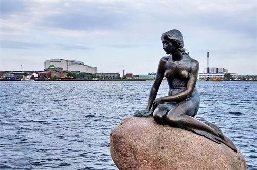 小美人鱼为童话王国丹麦的标志。坐落在哥本哈根海滨公园附近海滩上。小美人鱼侧身坐在一块大礁石上,上半身完全是一位纯情少女模样,自小腿以下渐次并合在一起,转化成鱼的尾鳍。它是丹麦雕塑家埃克里森于1912年根据安徒生童话“海的女儿”中的女主角雕铸的。