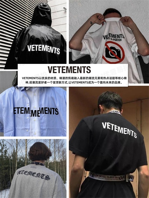 VETEMENTS以优良的材质、精湛的剪裁融入最新的潮流元素和热点话题等核心精神,给潮流爱好者一个宣泄新方式,让VETEMENTS成为一个面向未来的品牌。