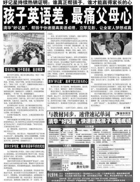 大整版报纸软文里,全是学生使用好记星的学习效果。
