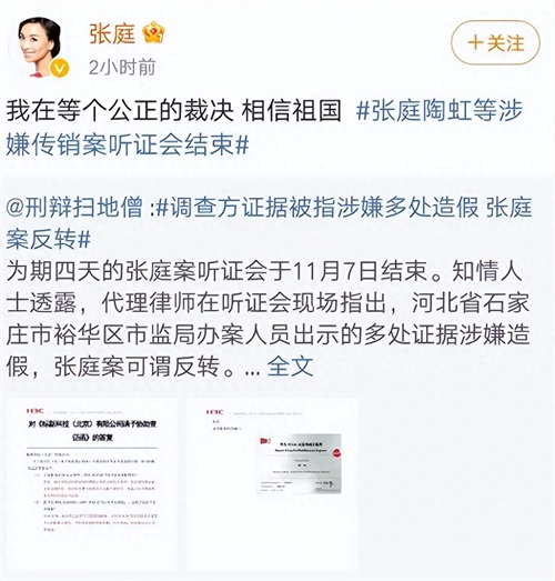 凭此举动再度把舆论的风向标转向了张庭。