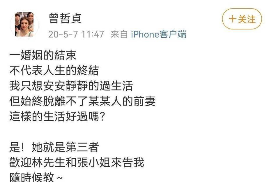 曾哲贞面对暴跳如雷的林瑞阳,曾多次公然在社交平台挑衅: