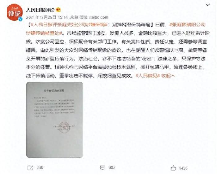 2021年底,张庭夫妇因传销被查,他们疯狂营销“TST”赚到了数百亿人民币,被处罚仅133万元。