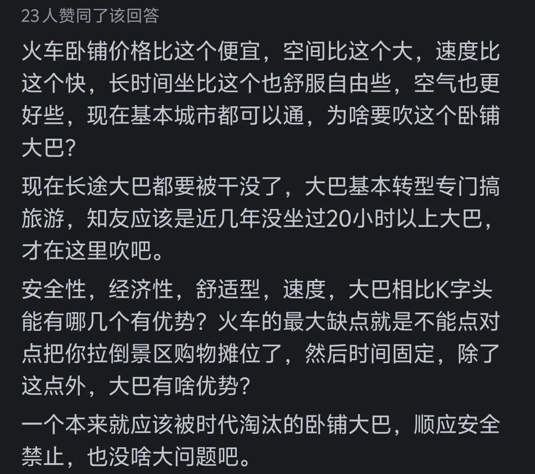 而且,封禁卧铺大巴车有助于优化交通运输结构,促进资源的合理配置。将更多的资源投入到高铁、动车等先进交通工具的发展中,可以提高交通运输的效率和服务质量,推动整个行业的进步。