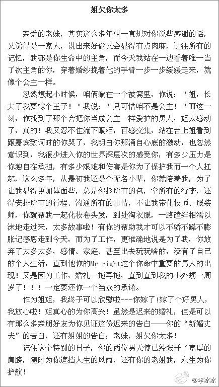 李冰冰写给妹妹的信