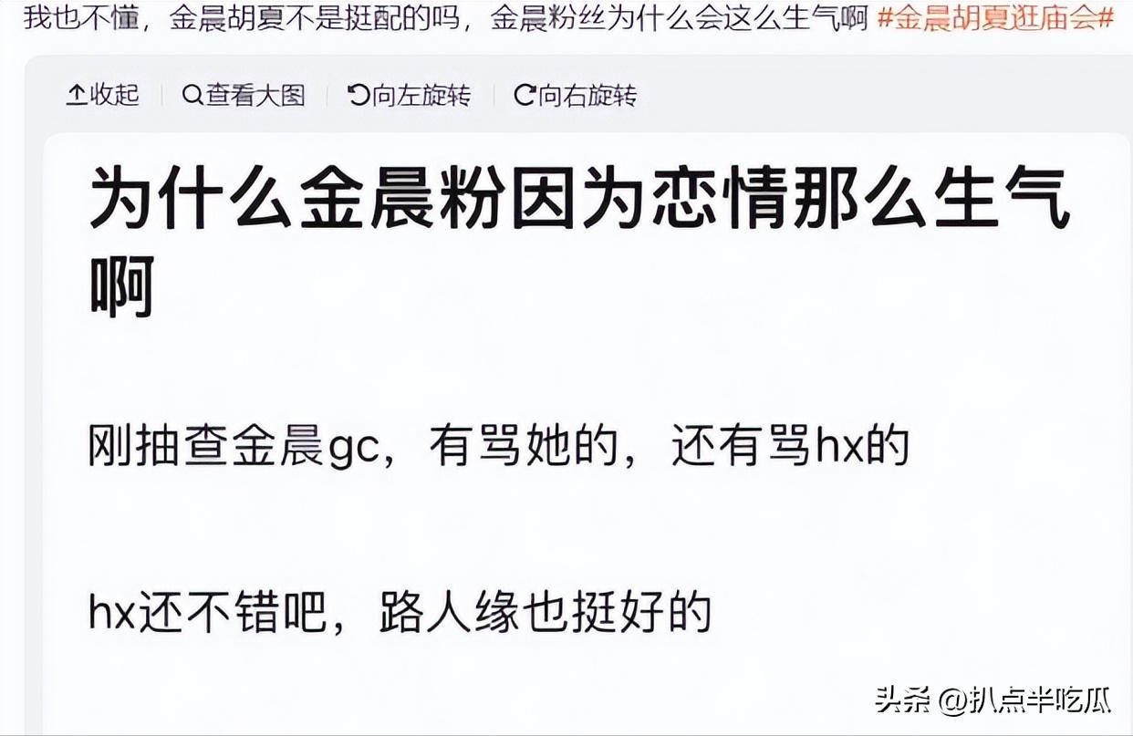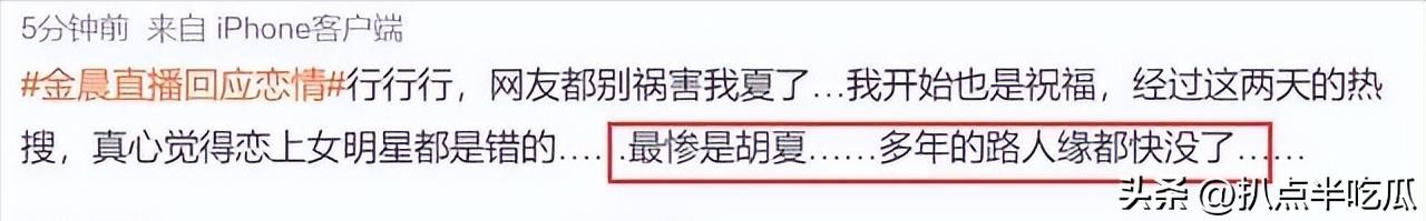 而胡夏也确实因为和金晨的疑似恋情,获得了出道以来第二次“高光时刻”。
