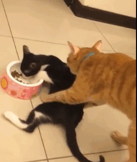 108、大橘猫:你这个奶牛不要抢我的饭碗,松开我的小饭碗!别再吃我的食物了……