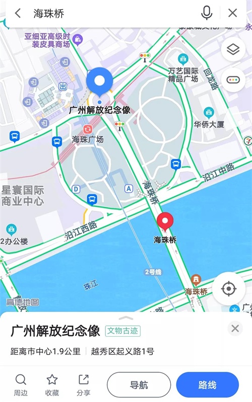 整个海珠广场有个“心”形外轮廓,我查询路段时看到地图上有这个特征就好奇查询了一下,1962年,海珠广场和广州解放纪念像曾以“珠海丹心”被评为羊城新八景。