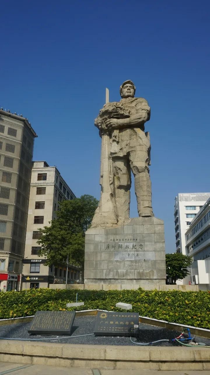 △1959年10月,在纪念广州解放十周年之际,在海珠广场北端的交通环岛中央,建起了一座用花岗岩雕成的“广州解放纪念像”。