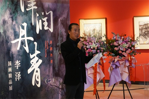 办展画家李泽爱人赵莹为《泽润丹青》李泽国画精品展写的前言: