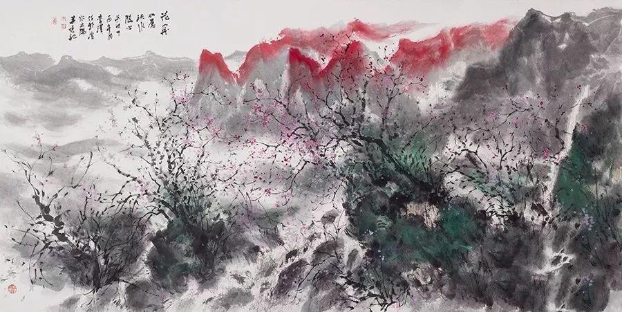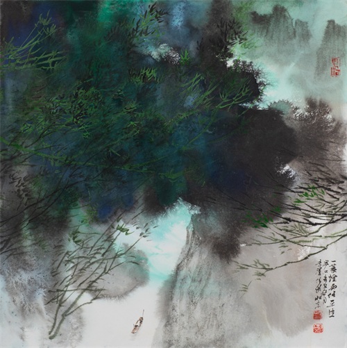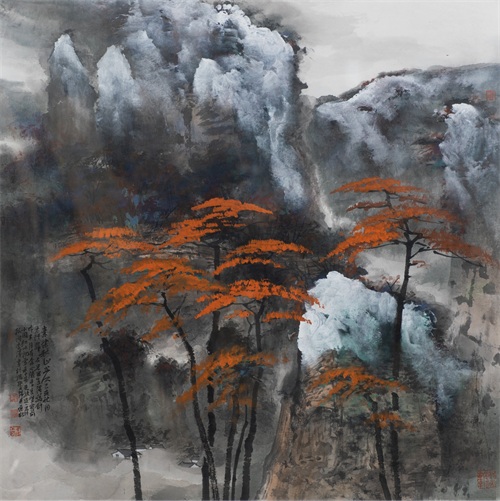 同时,李泽突破了泼彩以青绿色或黄赭色为基调的传统,大胆地调配出超出一般色彩范围之外的颜色,或姹紫嫣红,或金碧辉煌,仿佛锻打出刚柔相济的纹路肌理,使得画面更具冲击力,更有层次分明的空间感。可以说,李泽这种对传统笔墨求变求新的探索与尝试,为中国画增添了国际视野。