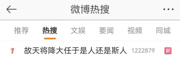 天将降大任于“是人”还是“斯人”?26日,这一话题吵上了热搜第一。