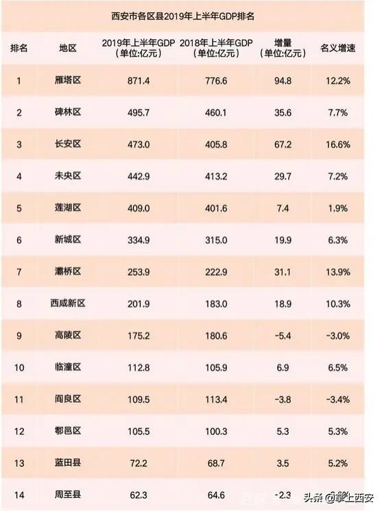今天,小编(掌上西安)给大家盘点下咱们大西安各区GDP情况,目前还没有公布2019全年各区GDP排行榜,但是可以从2019年上半年各区县GDP来看全年经济走势。